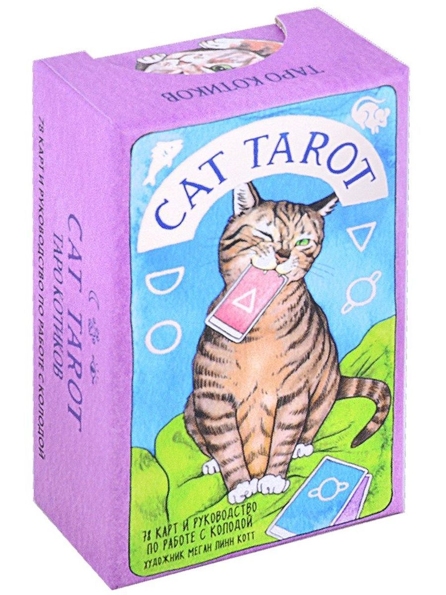 Cat Tarot – это… • Колода из 78 карт, созданных художницей Меган Линн Котт, с забавными, трогательными и мудрыми сюжетами. • Компактное руководство со значениями всех карт в прямом и перевернутом положении. • Простые расклады для начала работы с колодой. • Удобный лаконичный бокс для карт, украшенный фольгой.