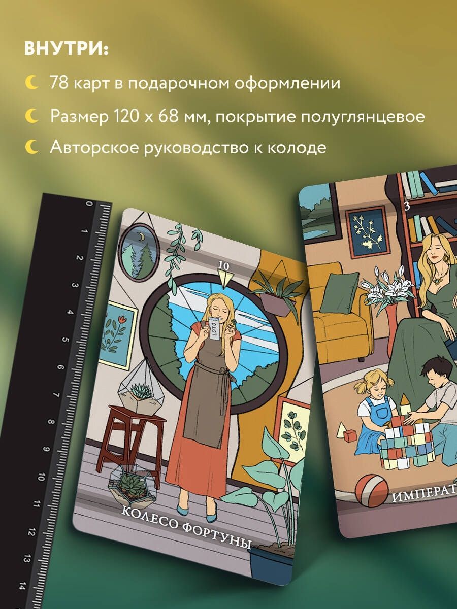 • Колода из 78 карт с душевными и интуитивно понятными образами.