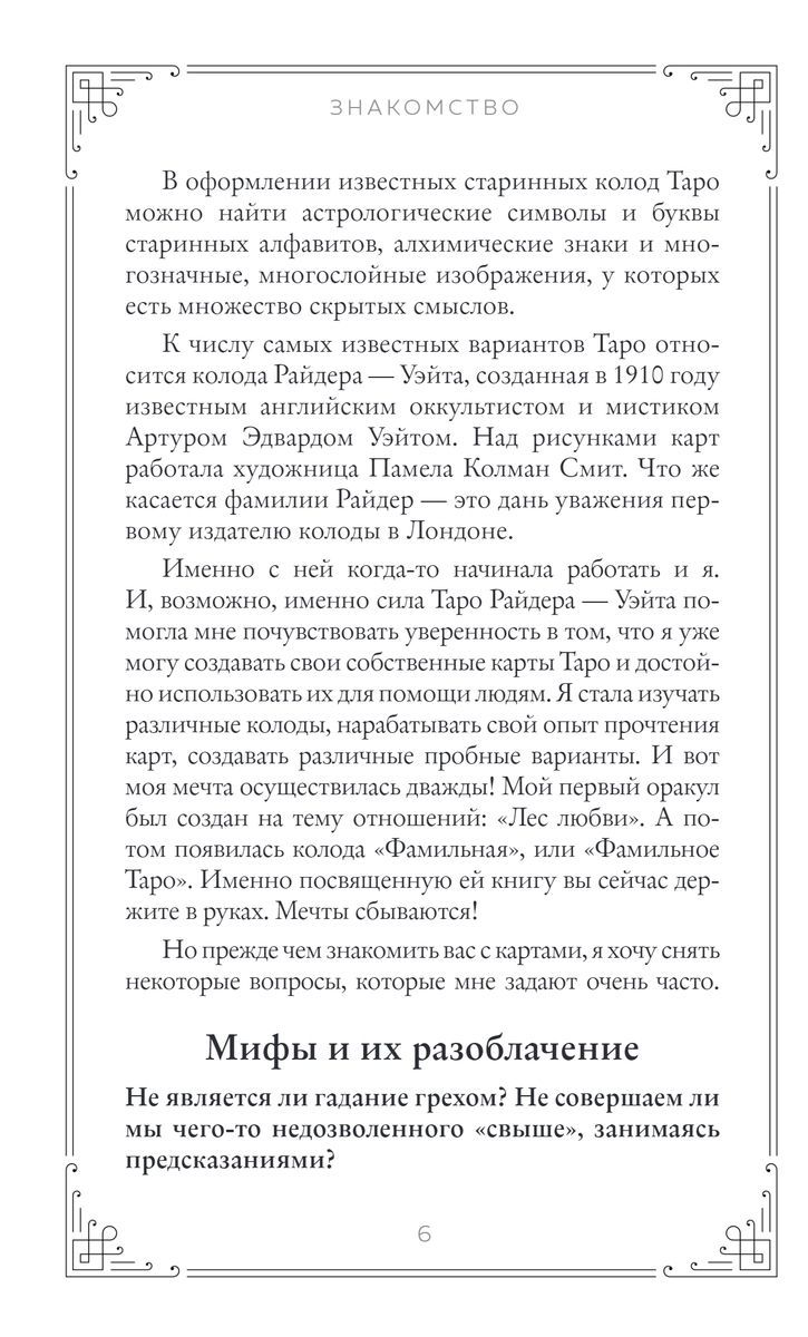 «Фамильное Таро» Вероники Тёмной, автора полюбившегося читателям оракула «Лес любви» — это колода, которая рассказывает про повседневную жизнь каждого из нас. Это история наших семей, друзей, близких и дальних родственников… Образы этих карт, созданные художницей Дарьей Кутовой, интуитивно понятны, даже если вы впервые взяли в руки Таро, и выполнены в традиции Таро Артура Уэйта.