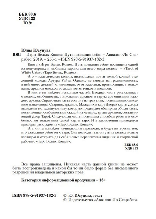 Книга «Игры Белых Кошек: Путь познания себя» посвящена одной из самых популярных и любимых тарологами всего мира колод – «Таро Белых Кошек (Tarot of White Cats)»