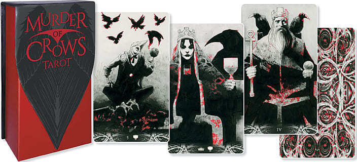 «Ворон всегда приходит в конце». Он посланник, приносящий знамения, хранитель и падальщик: у ворона нет хозяина. Эта готическая колода, в которой черные карты с вкраплением красного цвета крови привносят в Таро страх и беспокойство, как никогда раньше. Эта колода заглядывает в самые глубины души.