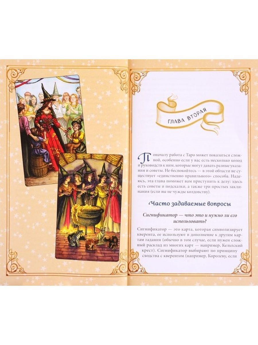Кем бы вы ни были, с Everyday Witch Tarot вы сможете почувствовать себя настоящей ведьмой! Здесь есть всё, что нужно, чтобы начать путешествие по Волшебной стране своего «я»: остроконечные шляпы, полеты на метлах, огромные котлы с зельями и волшебные палочки и, конечно, коты-фамилиары (и не только черные!), симпатичные колдуны и ведьмы (кто из них вы?). Но главное - бездна юмора, ведь без трезвого взгляда на себя и весь наш мир не обойтись ни одной современной ведьме.