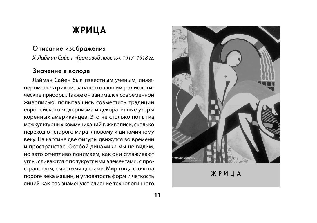 Отобранные автором картины выстроены так, чтобы взявший колоду в руки смог использовать весь потенциал символического осмысления мира и поменять направление своей судьбы.