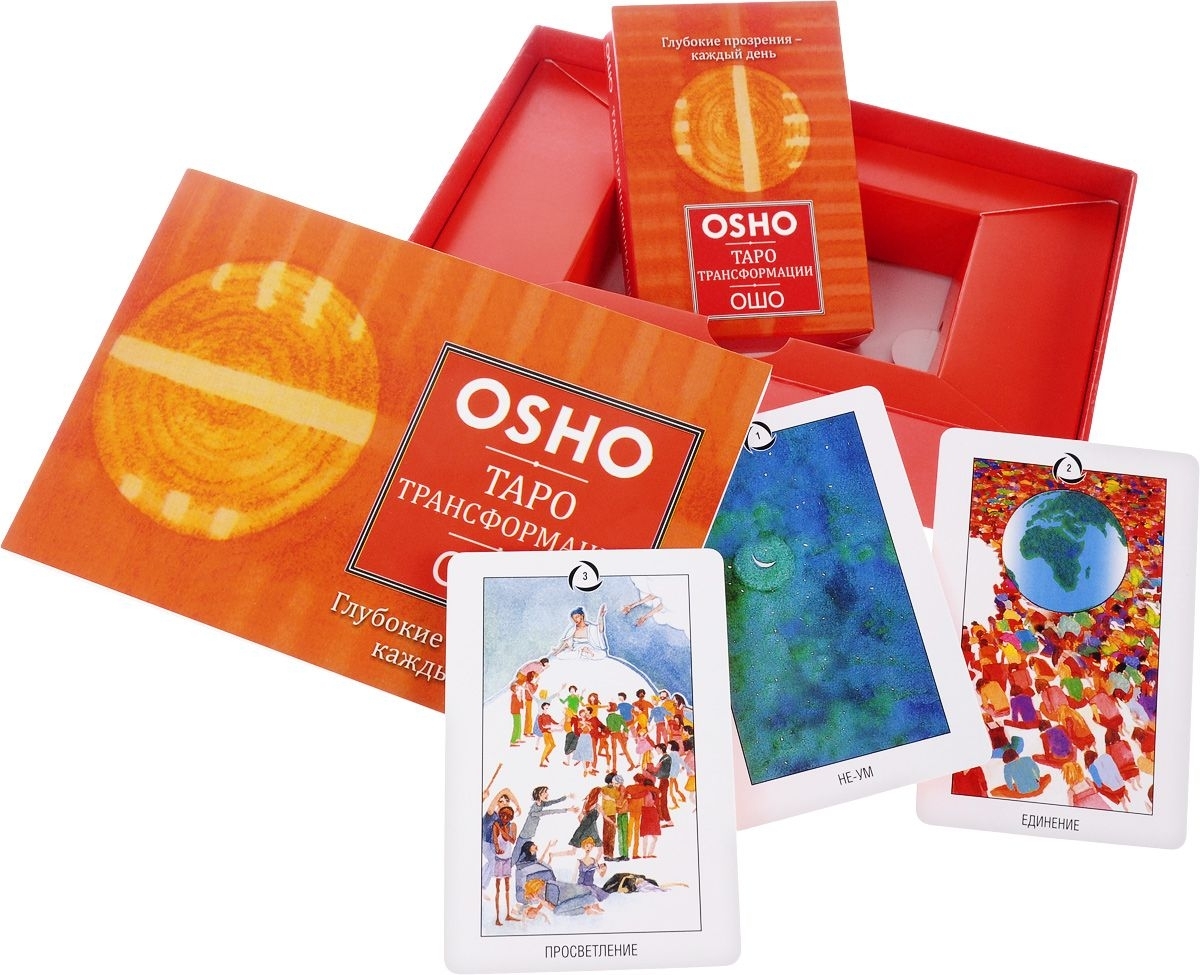 Ошо всегда призывал относиться к внутреннему поиску, к медитациям, к техникам самопознания, как к игре - легко и радостно. И карты Таро Трансформации представляют собой отличный инструмент для такого легкого и радостного познания себя. На каждой карте вы найдете короткую притчу и комментарии Ошо к ней. Причти подобраны самые разные - смешные и грустные, с юмором и серьезные, - так как они призваны показать разные стороны жизни и разные ситуации, в которые вы попадаете ежедневно. Выберите одну из карт, прочитайте ее и попытайтесь следовать совету, содержащемуся в притче, в течение дня. Но помните, что слова - лишь указатели на более глубокий смысл и истину. Читая карту, вы убедитесь, что даже "негативные", на первый взгляд, слова указывают путь к трансформации и более глубокому пониманию самого себя. И если вы выбираете карты с искренним желанием измениться, если вы открыты для общения с мудростью прошлого - то трансформация обязательно случится.