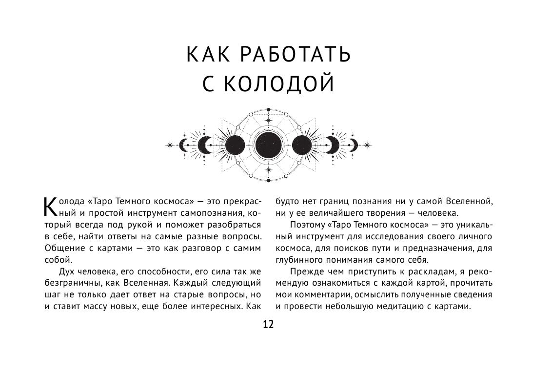 «Таро Тайны темного Космоса» — это инструмент нового поколения. Карты рассчитаны как на классическое толкование знаков относительно разных жизненных ситуаций (Будет ли карьерный рост? Придут ли деньги? Когда случится любовь? Будет ли легким выздоровление?), так и на программирование ближайшего будущего.