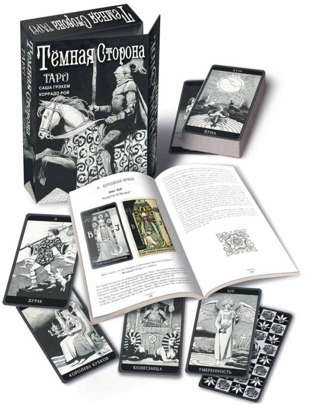 Эта колода, продолжающая традиции Таро А.Э. Уэйта и П.К. Смит, но выполнена в монохромном варианте, показывает нам тёмные стороны нашего бытия, порой пугающие, но необходимые, чтобы проникнуть в самые глубины подсознания.