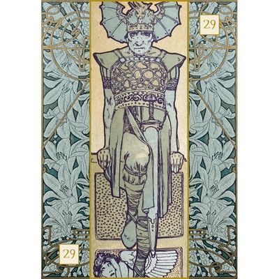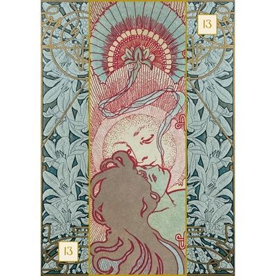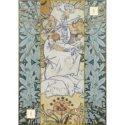 Вы можете выбрать любую карту и использовать ее в качестве карты дня или характеристики конкретной ситуации. Каждая карта содержит фрагмент художественного произведения Мухи, аспект, который впитал в себя множество символов или описывает одно чувство, на котором вы можете сосредоточиться. Используйте карту для формирования связи с природой и миром художника.