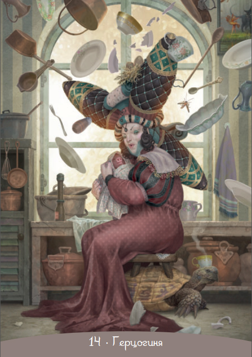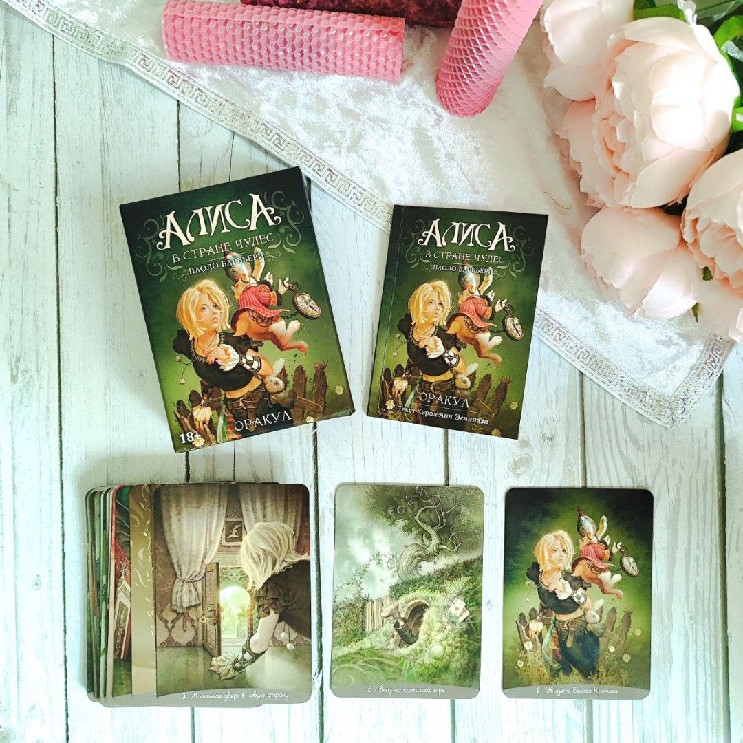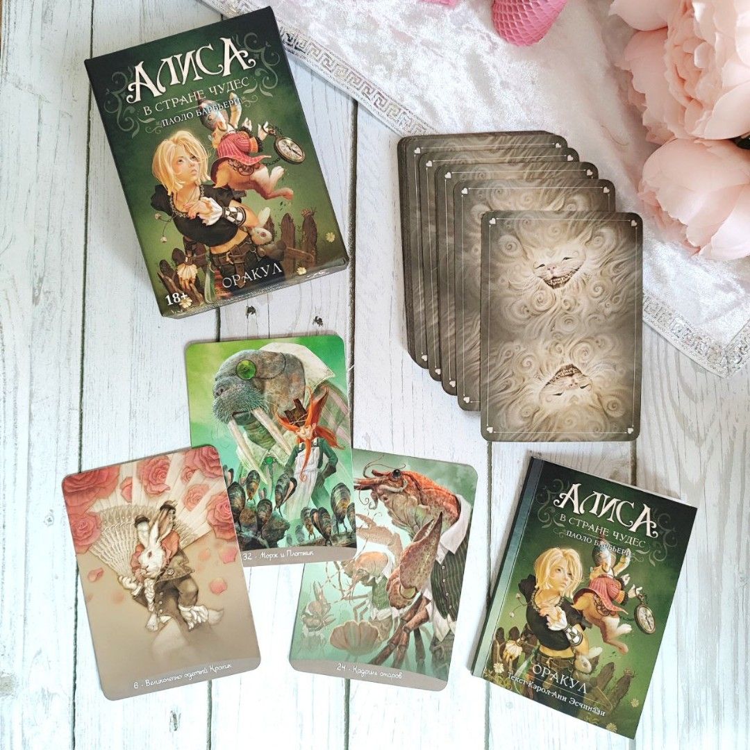Инструкция Кэрол-Анн Эсчинази обогащает Оракул интерпретацией интересных деталей, присутствующих в романе Кэрролла, делая карты прекрасным инструментом для гадания.
