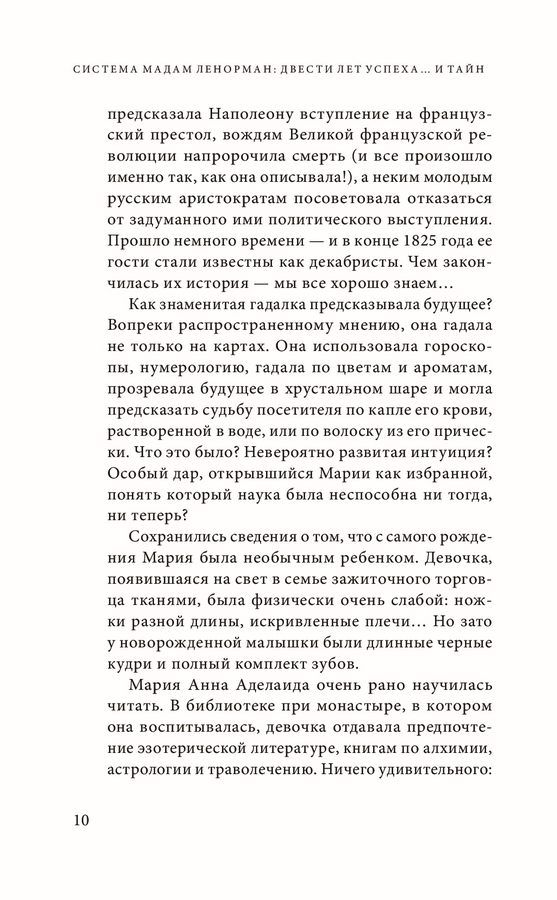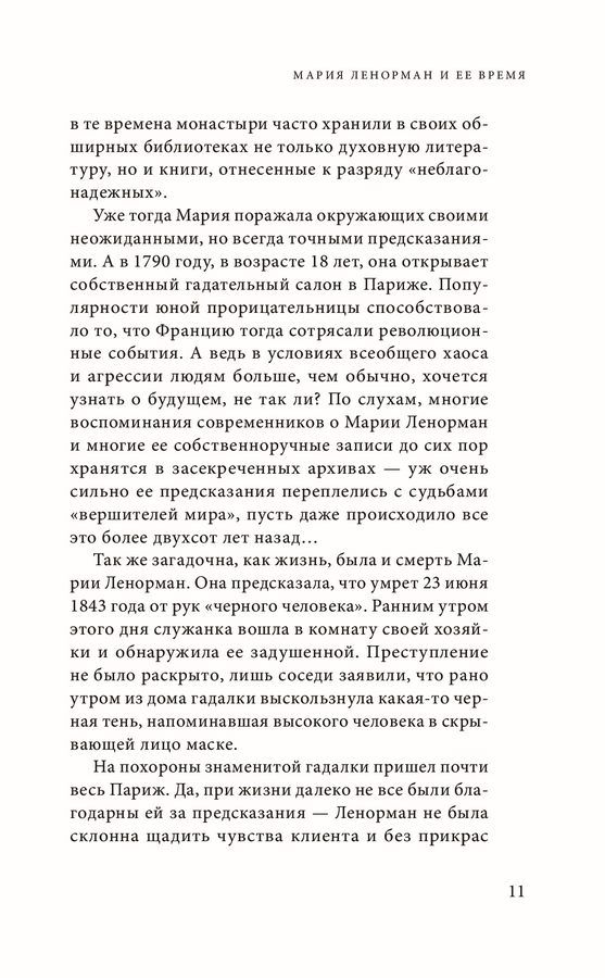 Мадам Ленорман, Черная Мария, стала легендой уже при жизни, предсказав брак Жозефины Богарне, разгром французской армии Наполеона в России, восстание декабристов и множество других, потрясших ее современников событий.