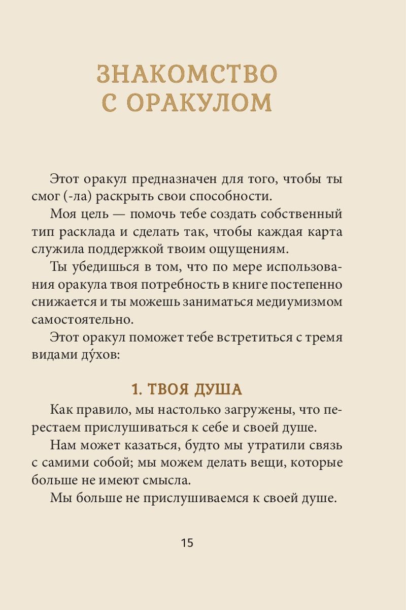 Благодаря магии, заключенной в изумительных иллюстрациях на картах, и книге-инструкции вы будете постепенно развивать свою силу как медиума, научитесь доверять своим ощущениям, получать вдохновляющие послания для своего духовного роста и интерпретировать их.