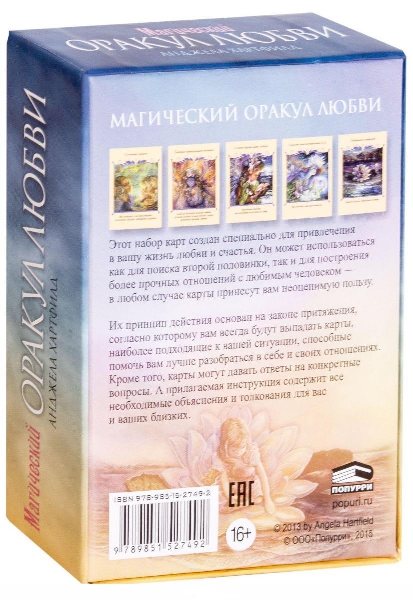 Их принцип действия основан на законе притяжения, согласно которому вам всегда будут выпадать карты, наиболее подходящие к вашей ситуации, способные помочь вам лучше разобраться в себе и своих отношениях. Кроме того, карты могут давать ответы на конкретные вопросы. А прилагаемая инструкция содержит все необходимые объяснения и толкования для вас и ваших близких.