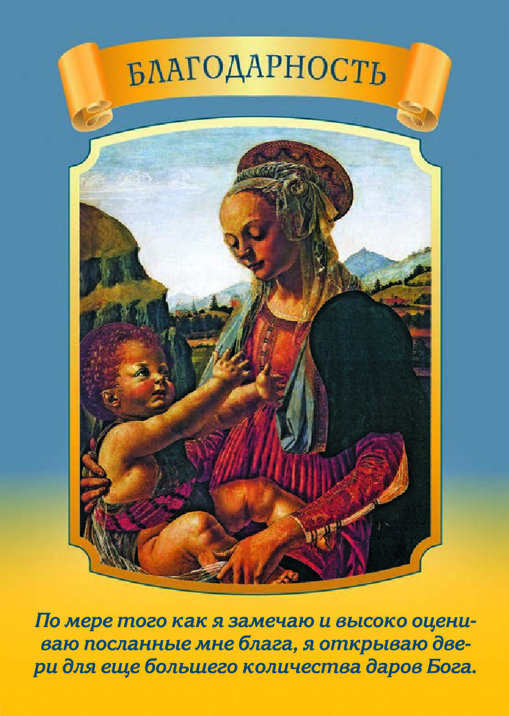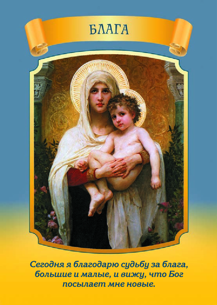 Матерь Божия Мария почитается во всем мире за чистоту ее сострадания, родительской любви и заступничества. Она заботится о каждом из нас и дает нам добрые материнские советы в любых областях жизни.