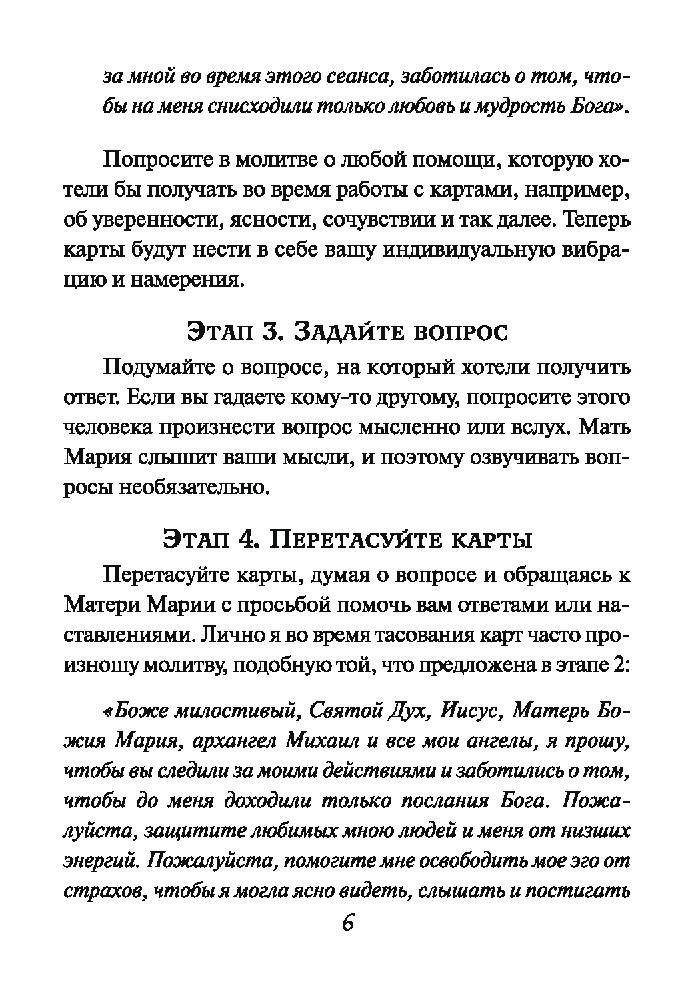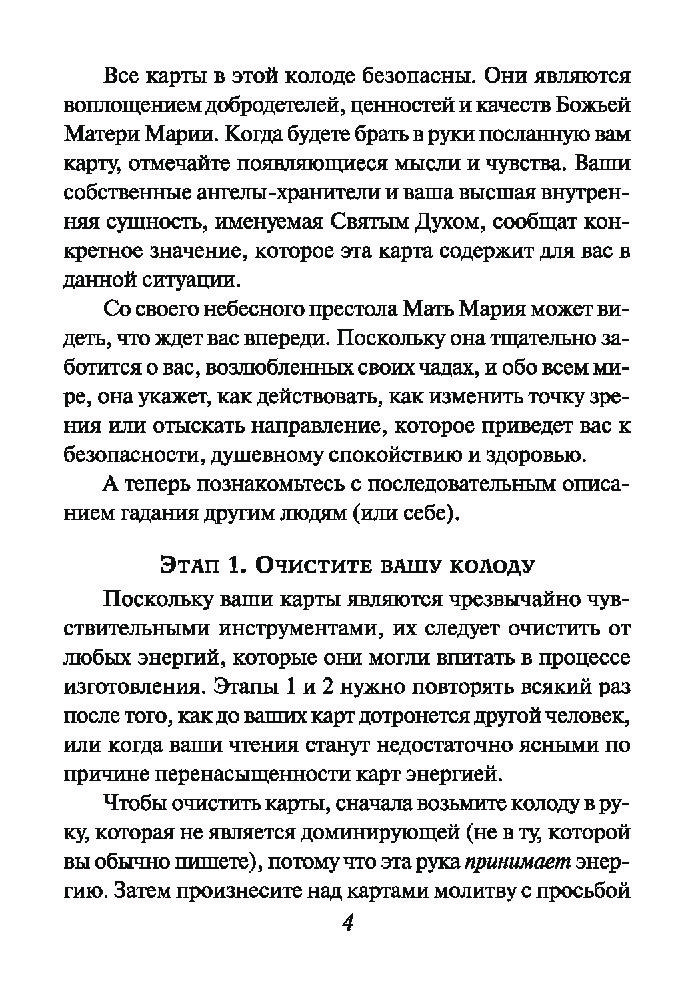 Карты содержат послания от Благословенной Матери, призванные воодушевить вас, поддержать и направить в тот момент, когда вам это больше всего необходимо. Мария укажет вам, как вы должны действовать, изменить вашу точку зрения или отыскать направление, которое приведет вас к безопасности, душевному спокойствию и здоровью.