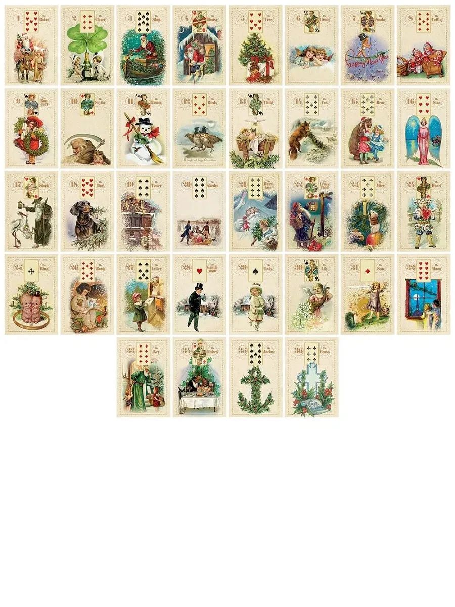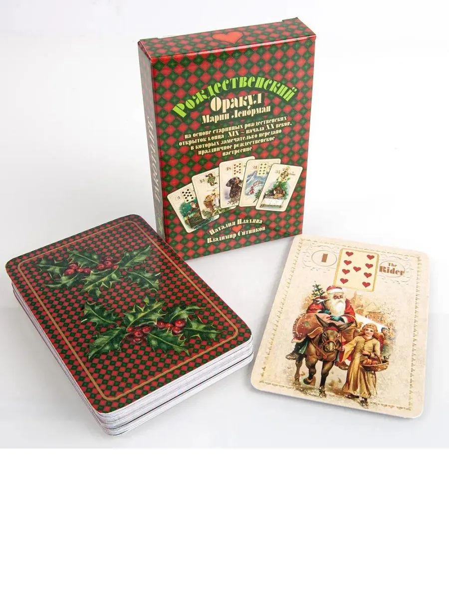 «Рождественский оракул Марии Ленорман» создан на основе старинных рождественских открыток конца XIX – начала ХХ веков, в которых замечательно передано праздничное рождественское настроение. Станет ли эта колода вашим рабочим инструментом или просто милым украшением вашей коллекции – решать вам. В любом случае – она доставит вам удовольствие, создав праздничную и волшебную атмосферу.