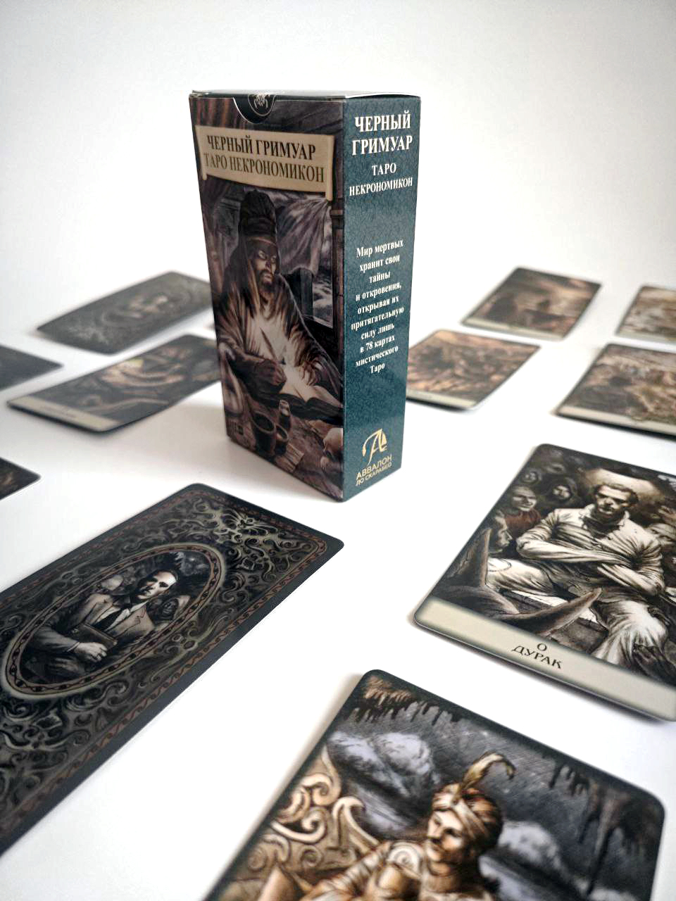 Карты Таро Аввалон-Ло Скарабео "Черный Гримуар. Таро Некромикон" продолжают серию "Темных Таро", которые открывают мир мертвых, хранящий свои тайны и откровения. Колода берет свое название из книги магии "Гримуар" и представляет захватывающие и тревожные видения темной стороны психики.