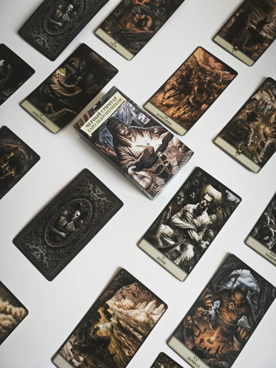 Через карты Таро "Черный Гримуар. Таро Некромикон" тонкие сущности готовы пообщаться с вами языком символов и аллегорий. Карты Таро, вдохновленные воображаемым миром Лавкрафта и его образами, задевают тонкие струны подсознания.