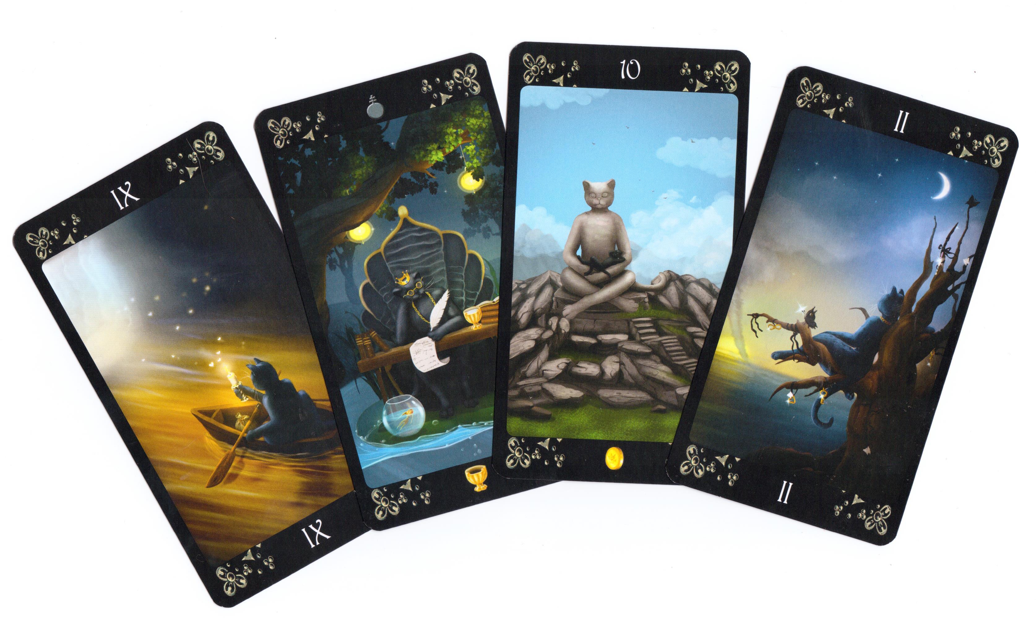 Коты на картах намеренно имеют человеческий характер и человекоподобное строение тела, но не утратили своей животной природы, это поможет вам при толковании арканов, поможет провести ассоциацию с человеком и его жизнью.