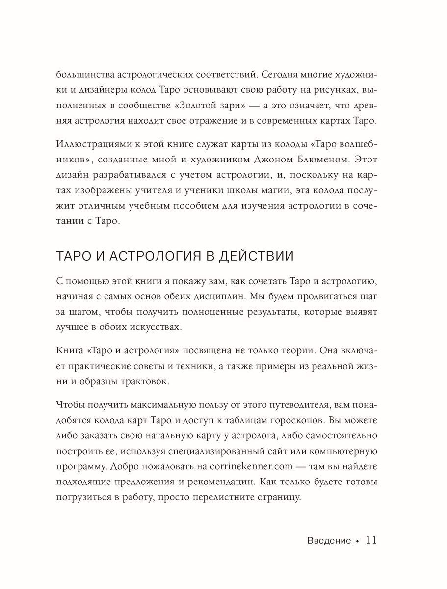 Книга «Таро и астрология» посвящена не только теории. Она включает практические советы и техники, а также примеры из реальной жизни и образцы трактовок.Коррин Кеннер живет в США. Она получила степень бакалавра философии в Калифорнийском государственном университете, специализируется на практическом применении метафизических дисциплин, является сертифицированным мастером Таро и автором многих книг.