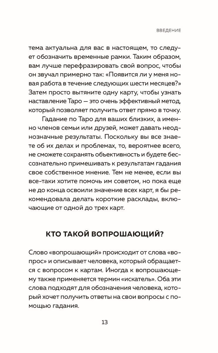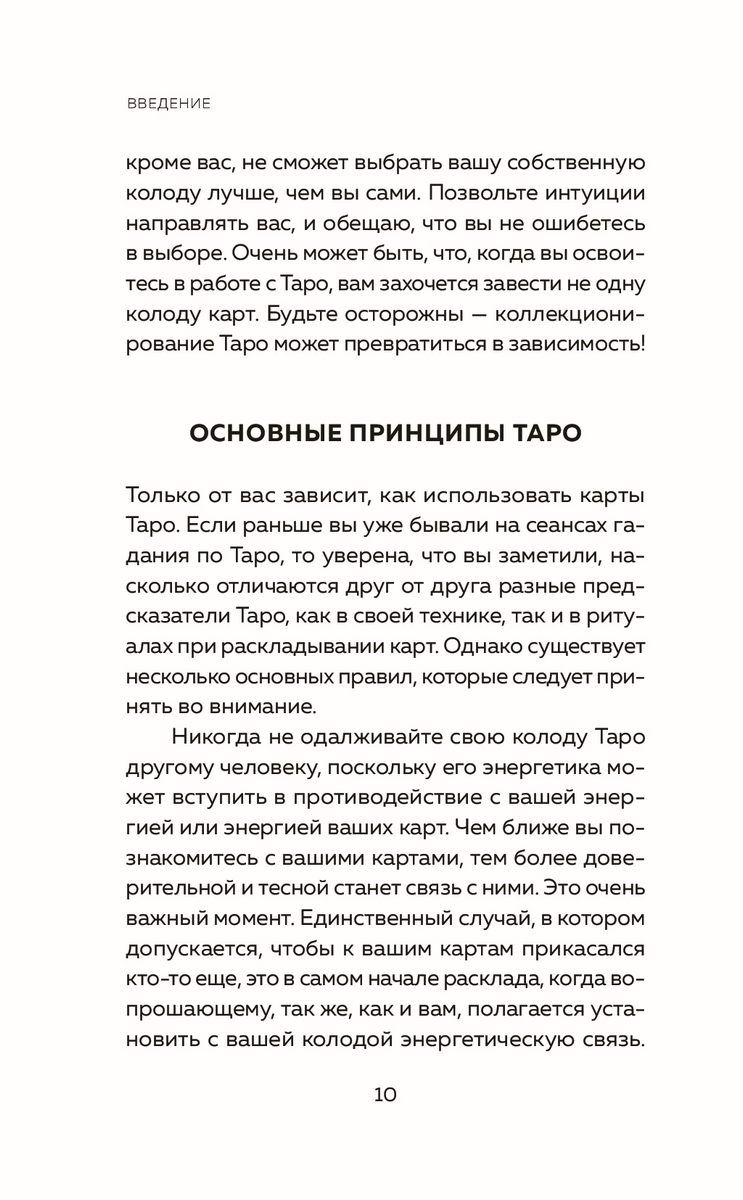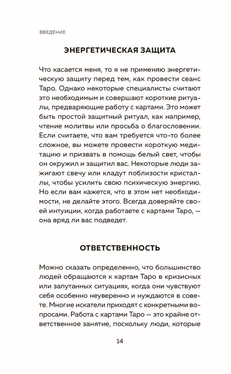 Эта книга расскажет, как выбрать "правильную" колоду, идеально подходящую именно вам, поможет настроиться на нее и познакомит с правилами гадания и принципами чтения карт. Здесь вы найдете подробные описания значений Старших и Младших арканов, познакомитесь с нумерологическими значениями карт Таро, освоите самые эффективные расклады на все случаи жизни и даже сможете создать свой собственный, авторский расклад.