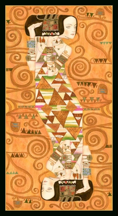 Насыщенный изобразительный ряд, в основу которого положены работы австрийского художника и графика начала прошлого века Густава Климта, заряжает карты непревзойдённым запасом энергии, которая, в сочетании с мощной идеей, делает это Золотое Таро прекрасным инструментом в руках картомана.