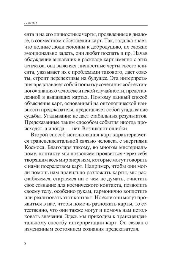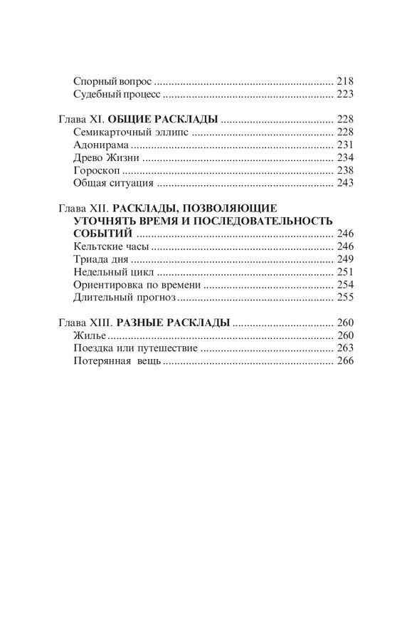 Расклады и интерпретации, описание значений карт, обширные комментарии и примеры облегчают чтение и понимание книги, дают возможность делать предсказания более квалифицированно.