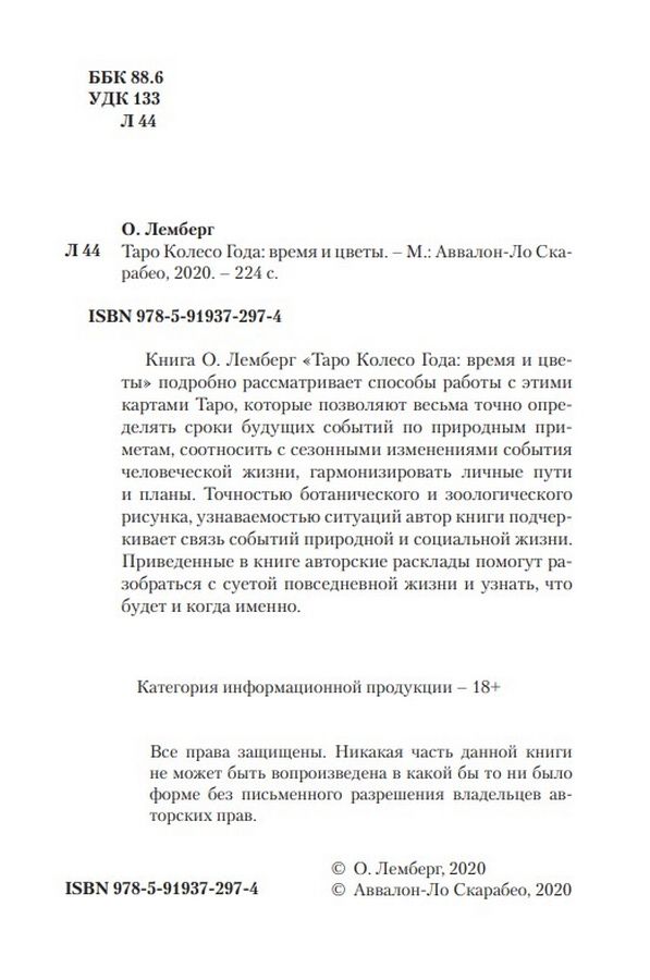 Предлагаемый в книге способ работы с Таро «Колесо года» позволяет определять сроки будущих событий по природным приметам, соотносить с сезонными изменениями события человеческой жизни и гармонизировать личные пути и планы.