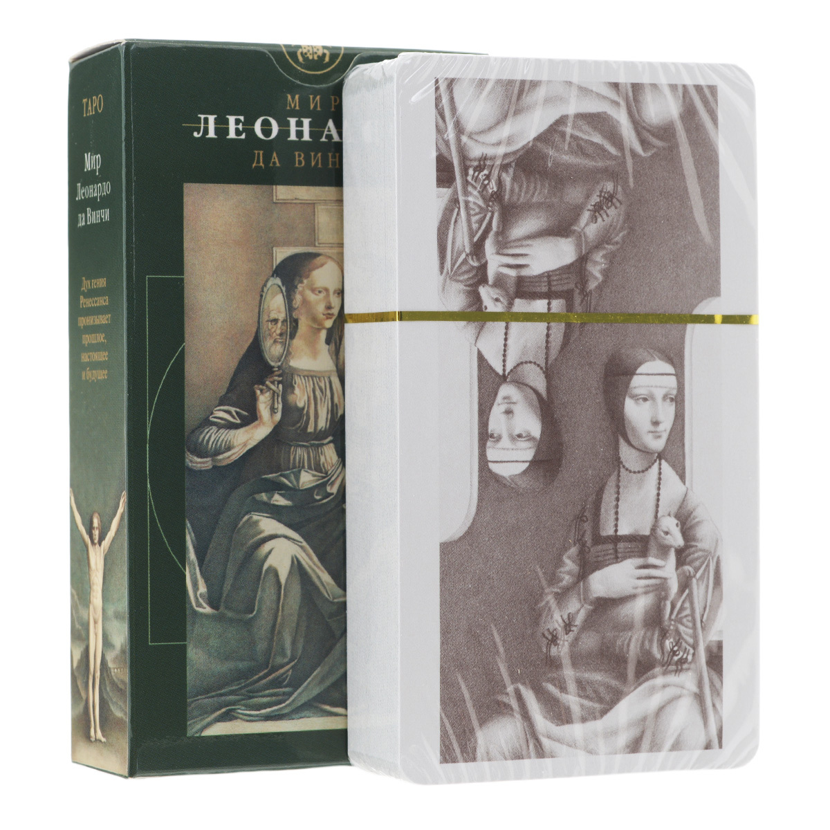 Прекрасные персонажи полотен и фресок великого художника итальянского Ренессанса Леонардо да Винчи, гармонично включающие в себя весь спектр человеческих чувств и отношений, вдохновили болгарских художников Ясеня Чизлева и Атанаса Атанассова на создание этой изумительной серии Таро. Каждая карта Аркана, перенося нас в мир средневековья и Высокого Возрождения, благодаря своему архетипическому сюжету, связывает прошлое, настоящее и будущее в единую мозаику мира.