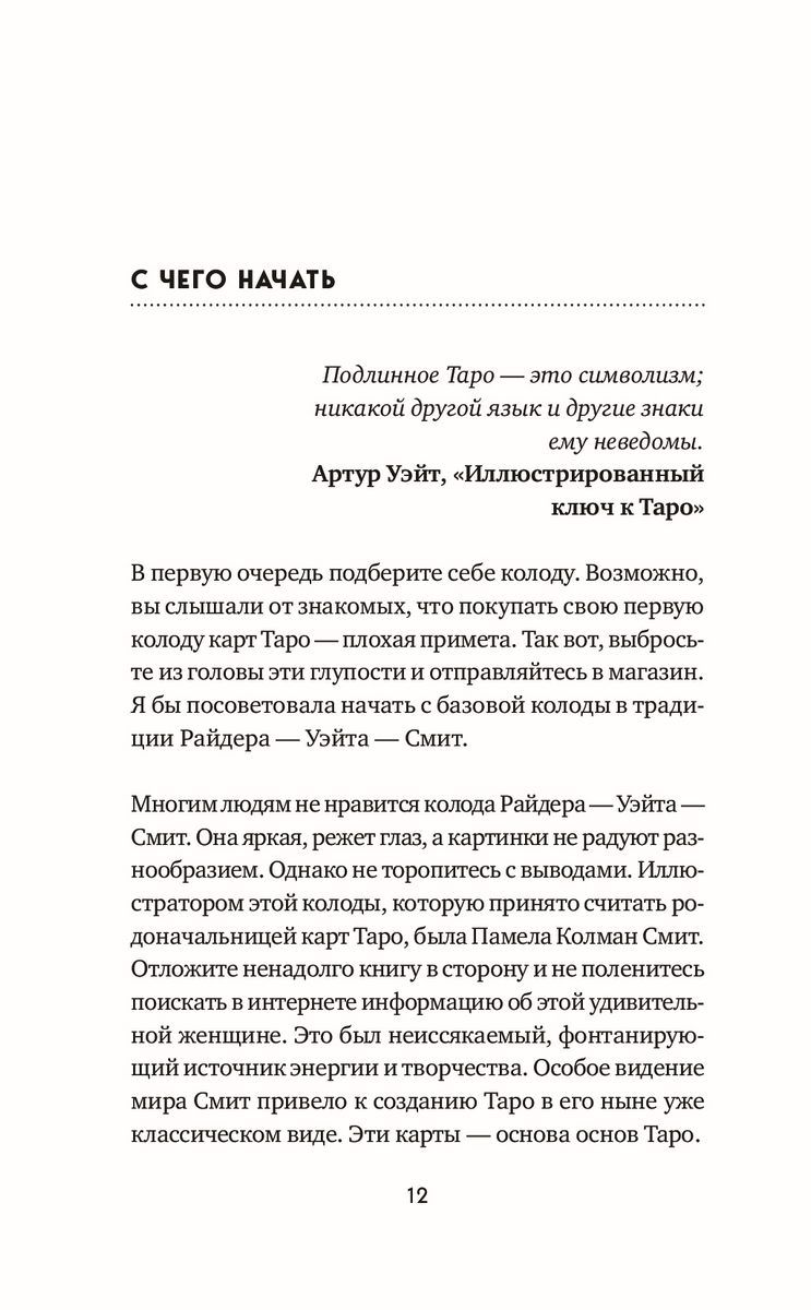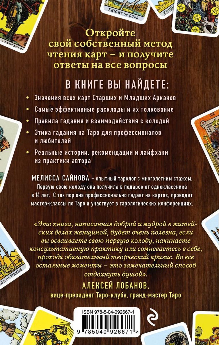 Эта книга даст вам возможность найти свой собственный подход к Таро. Ее автор, опытная гадалка Мелисса Сайнова, откроет секреты работы с Таро, прояснит практические вопросы, интересующие не только новичков, но и опытных тарологов, развеет основные суеверия и заблуждения, окружающих эту сложную систему. А главное, поможет выстроить личные отношения с картами — и получить ответы на все вопросы.