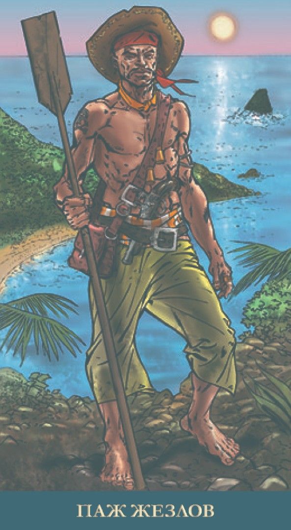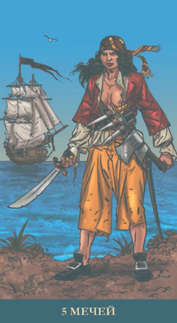 - уникальные масти: эль вместо чаш, весла вместо жезлов, дублоны вместо пентаклей и мачете вместо мечей; - иллюстрации в духе историко-приключенческой романтики.