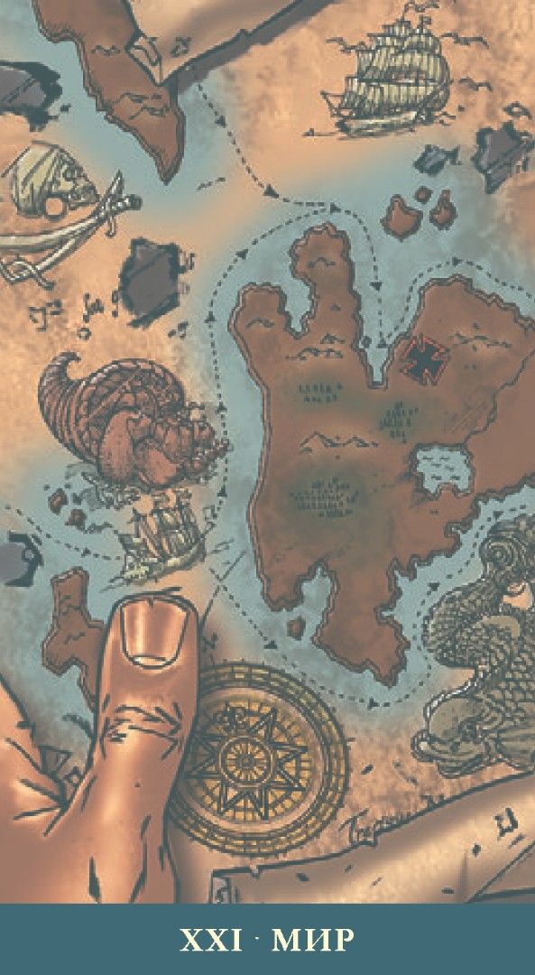 Каждый Аркан — как сцена из пиратской саги: магия и мистика, абордажи и золото, выбор между славой и опасностью. Образы карт вдохновлены эпохой флибустьеров, легендами Карибского моря и пиратским эпосом XVII века. Вы встретите Генри Моргана, испанские галеоны, шхуны и острова сокровищ — всё это в сочетании с классической структурой Таро.