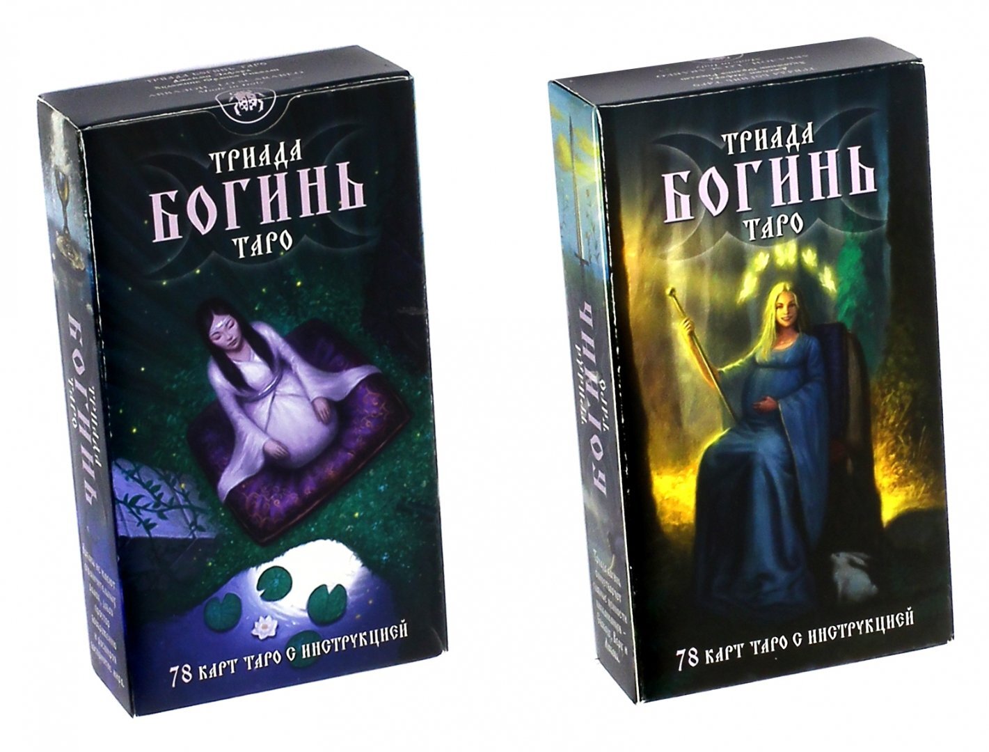 Это Таро навеяно мотивами современного неоязычества-викканства. Центром религиозной доктрины викканцев является Великая Богиня, выражающая женский принцип в трёх её ипостасях - Триаде: Дева, Мать и Старуха (Крона).