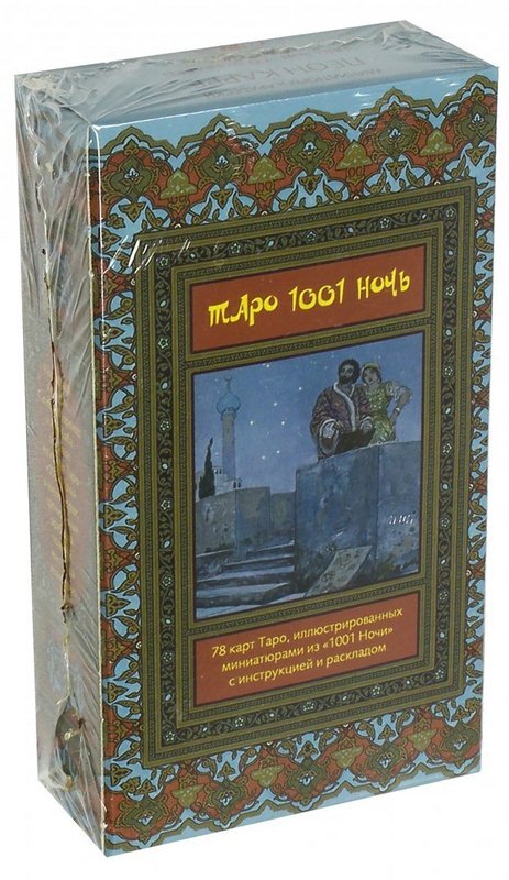 Волшебство сказок и историй, изящество миниатюр, восточная экзотика — всё гармонично переплелось в Таро 1001 ночь, пронизанном ароматами пряностей, ветром пустынь с их караванами, оазисов с их арыками, восточными городами с шумными базарами и роскошными дворцами, легко скользя по канве человеческой жизни.
