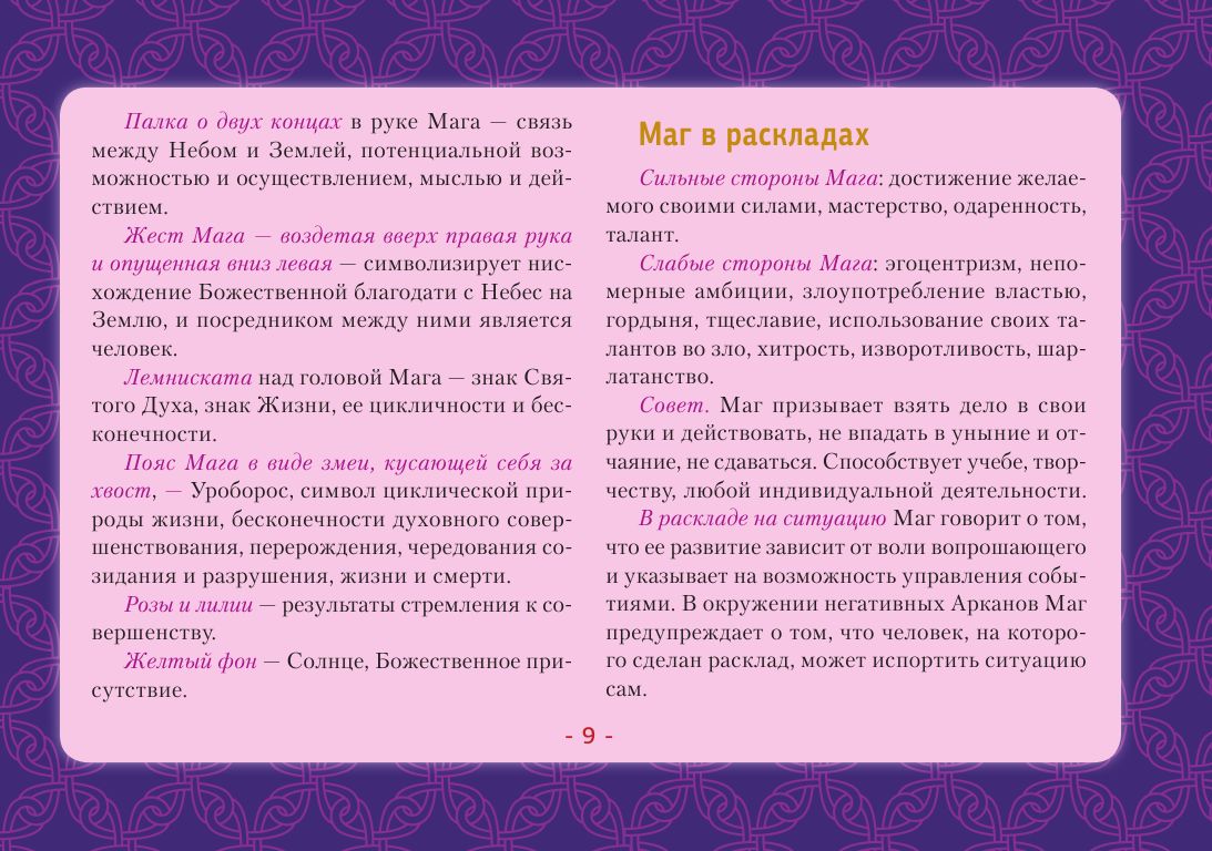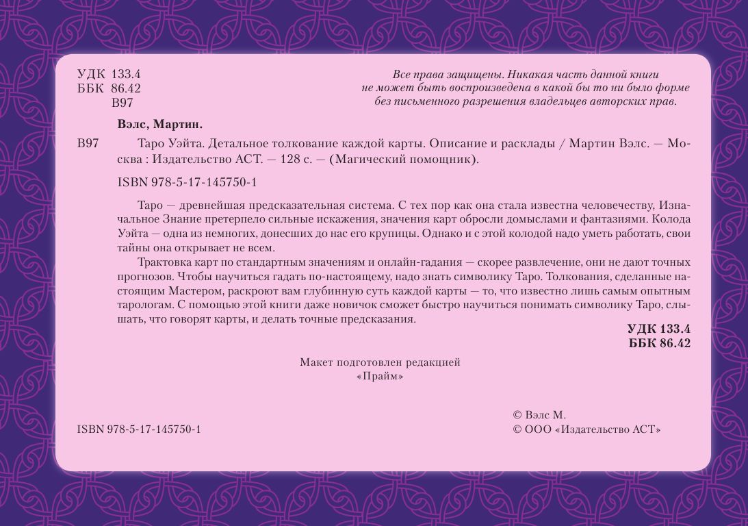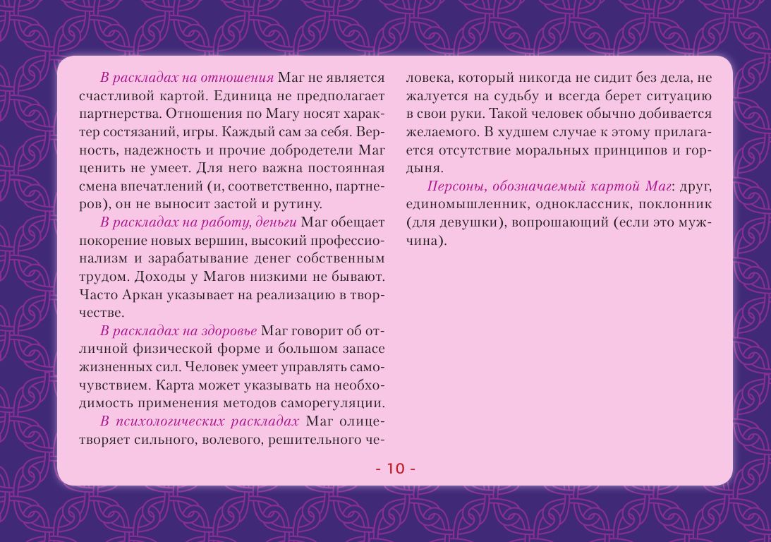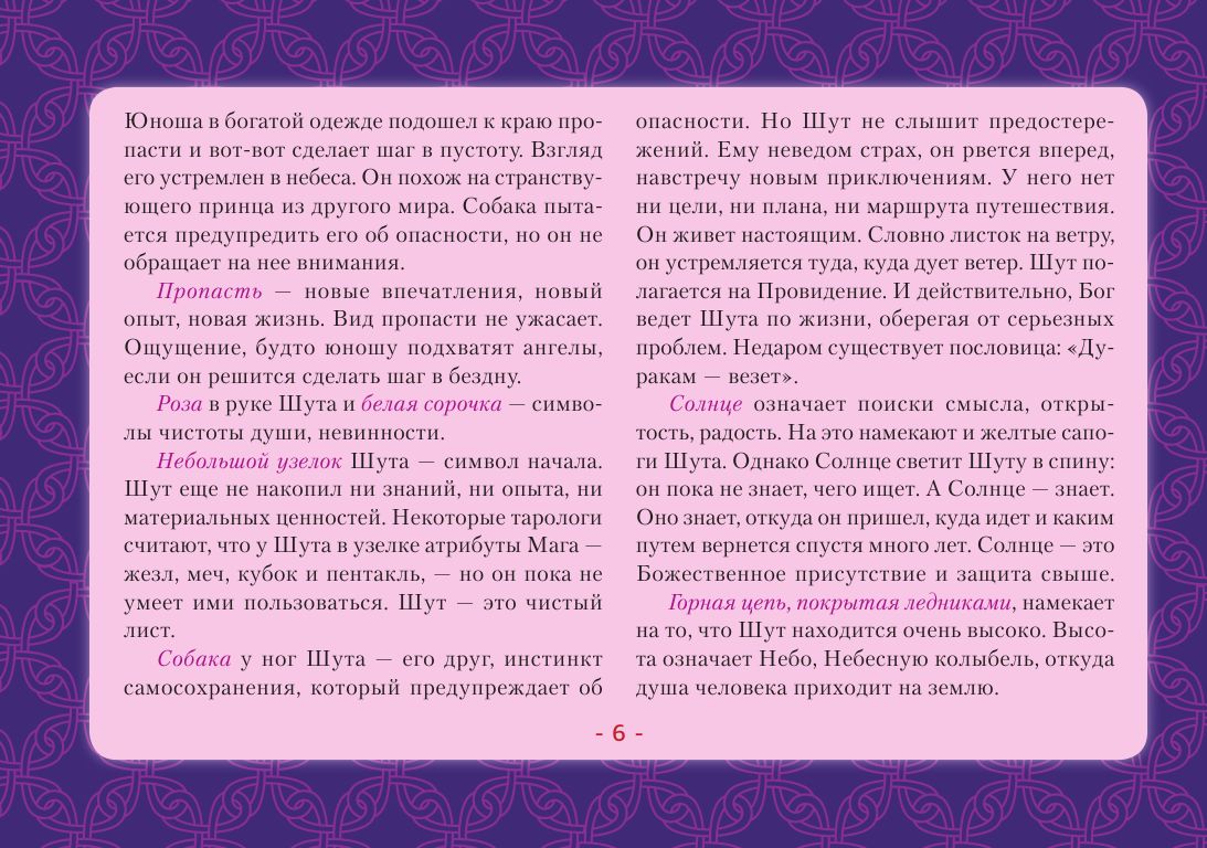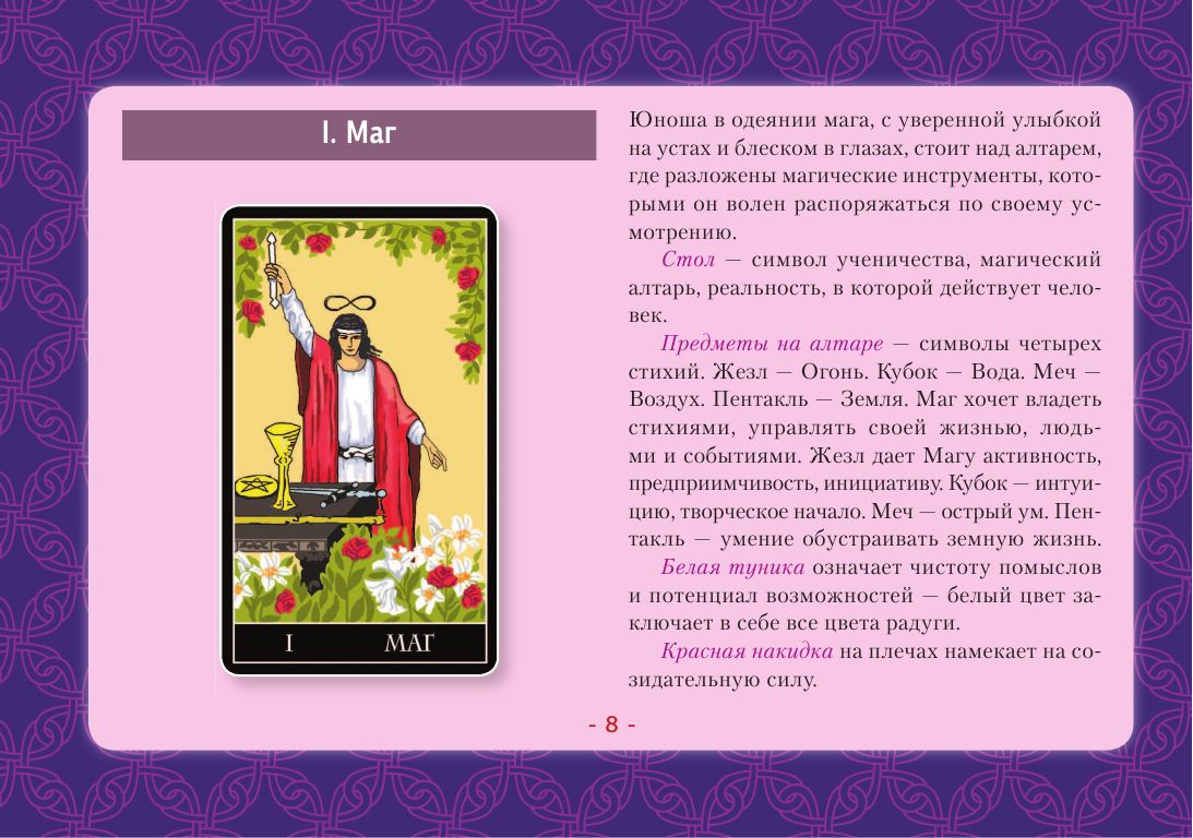 Трактовка карт по стандартным значениям и онлайн-гадания — скорее развлечение, они не дают точных прогнозов. Чтобы научиться гадать по-настоящему, надо знать символику Таро. Толкования, сделанные настоящим Мастером, раскроют вам глубинную суть каждой карты — то, что известно лишь самым опытным тарологам. С помощью этой книги даже новичок сможет быстро научиться понимать символику Таро, слышать, что говорят карты, и делать точные предсказания.