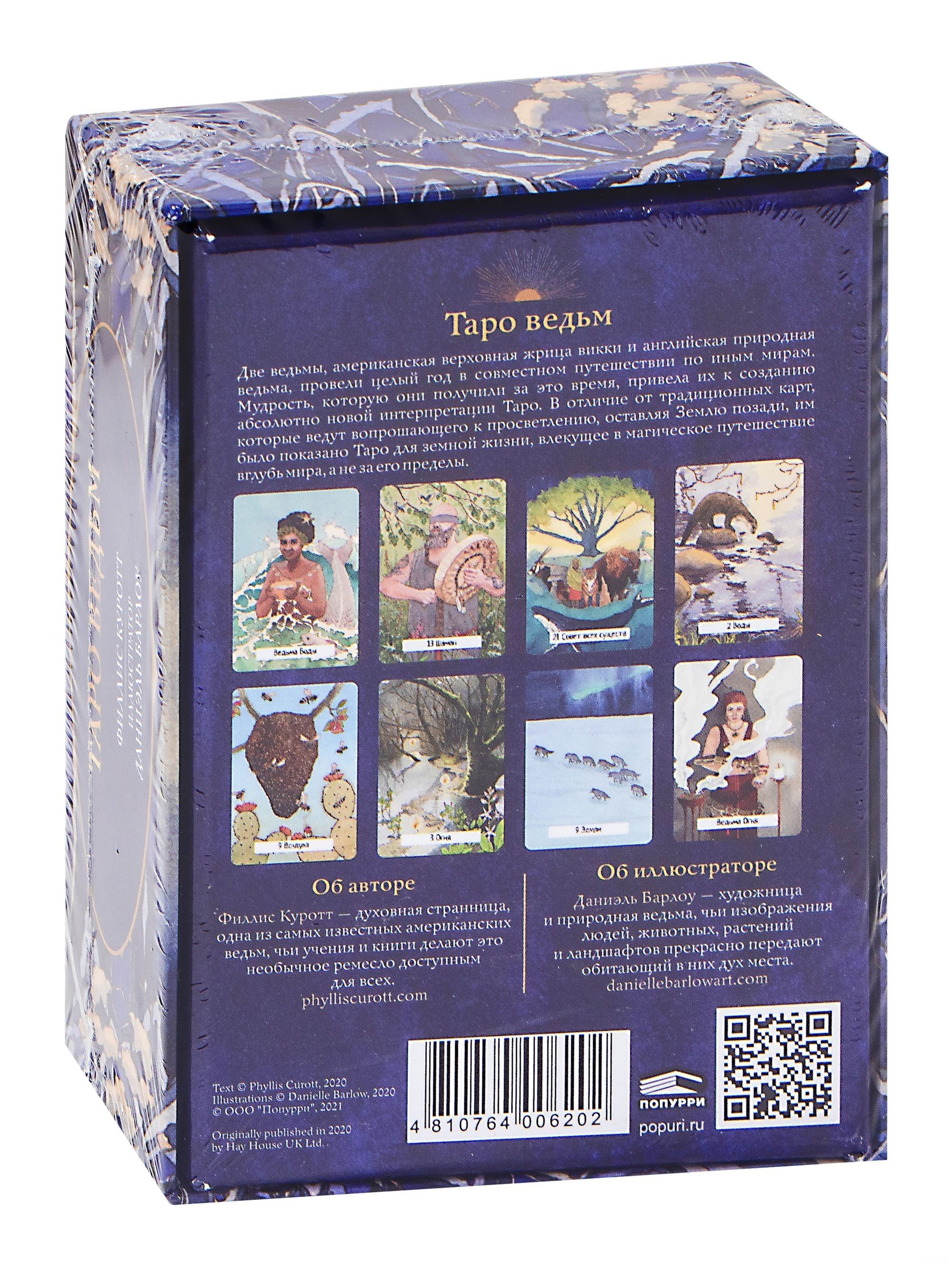 «Таро ведьм» — это набор карт, который послужит источником мудрости для всех, кто желает обрести дар духовного прозрения, пробудить ведьму внутри себя или просто найти ответы на жизненно важные вопросы. Младшие Арканы в этой колоде характеризуют роль стихий Воздуха, Огня, Воды и Земли в повседневной жизни. Воодушевляющие послания карт призывают вас использовать необузданную божественную магию природы, следуя мудрым посланиям матери-земли и ее детей. Старшие Арканы — это карты судьбы, которые описывают путешествие души в направлении, противоположном традиционному. Чтобы достичь просветления, вовсе не обязательно оставлять позади все заботы материального мира.