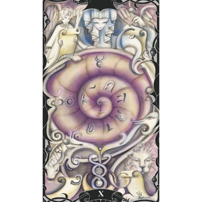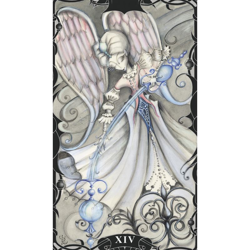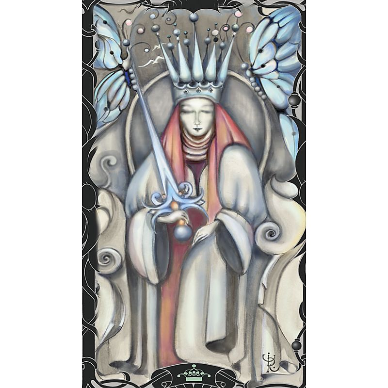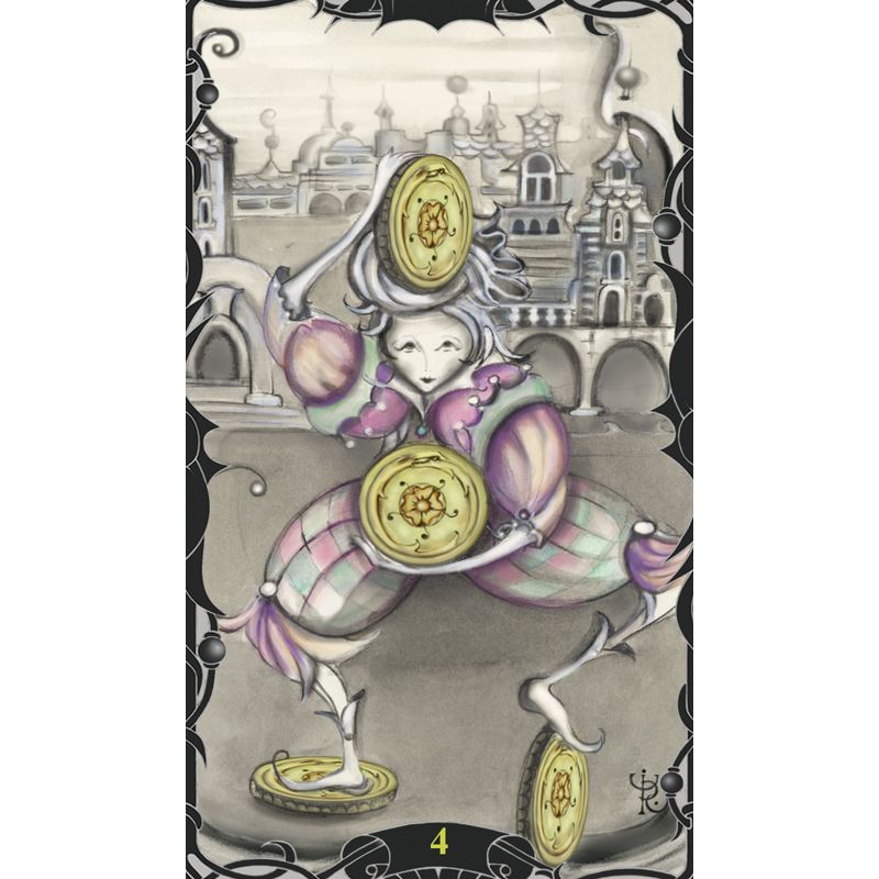 Множество изогнутых и извилистых линий, элегантная серебристая палитра, сказочные существа, танцующие в декорациях в стиле Тима Бёртона: Таро Заколдованного Сада обладает уникальной и таинственной атмосферой, которая пробуждает любопытство и зажигает в нас искру волшебства. Эта колода — приглашение на сказочный бал в далекой стране.