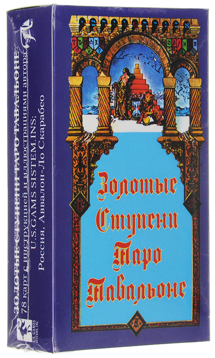 «Золотые Ступени Таро» - Эта уникальная и исключительно красивая колода, которая, начиная с 78 карт и заканчивая инструкцией, была выполненная современным итальянским эзотериком, художником и учёным Джорджио Тавальоне. Перед издателями и переводчиками стояла задача по возможности передать особую энергетику этого Таро, запечатлённую не только в изображениях и символике карт, но и в графике рисунков и в текстах инструкции, хранящих след руки автора.