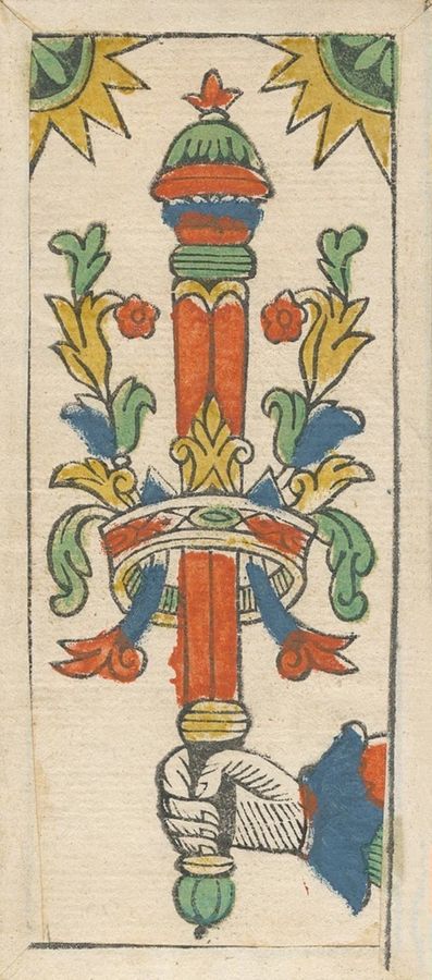 Невероятно редкая колода Тарокки «Аль Солдато», в которой вместо Верховной Жрицы, Императрицы, Императора и Иерофанта представлены четыре карты с изображением мавров. Как и другие Тарокки из Болоньи, колода состоит из 62 карт.