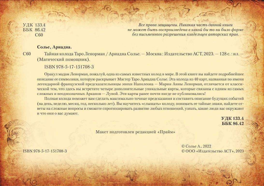 Ариадна Солье всю жизнь посвятила Свету карт Ленорман и передала весь свой опыт в этой книге.