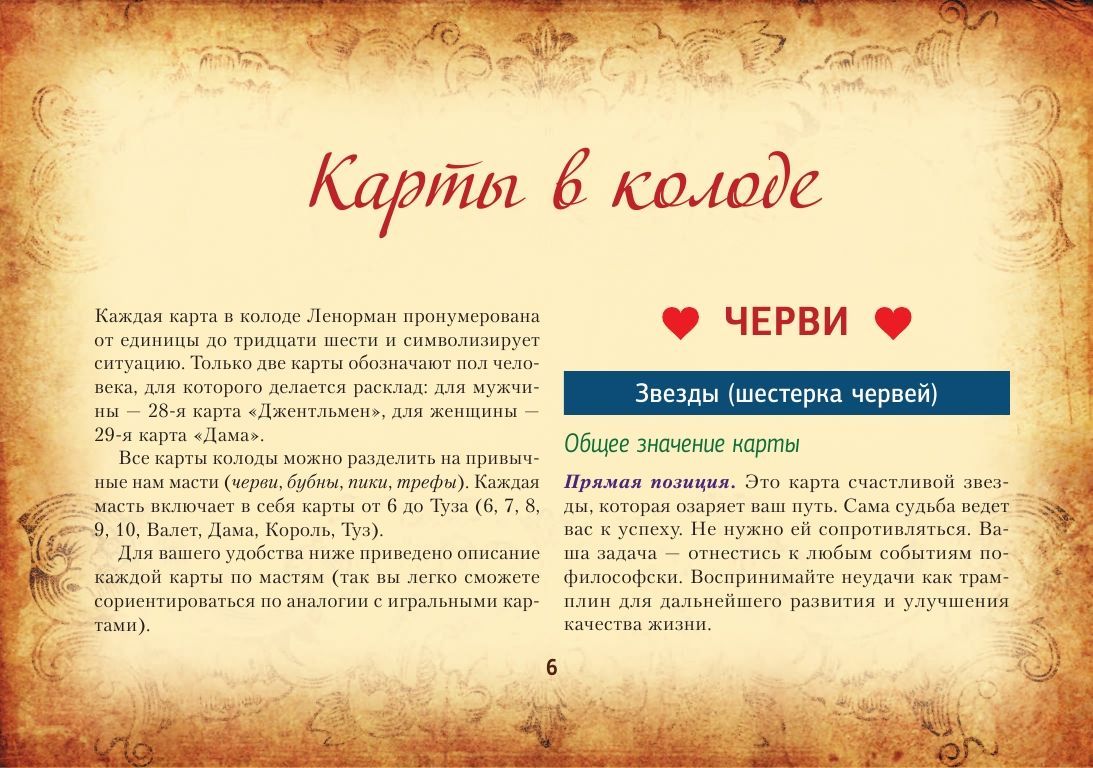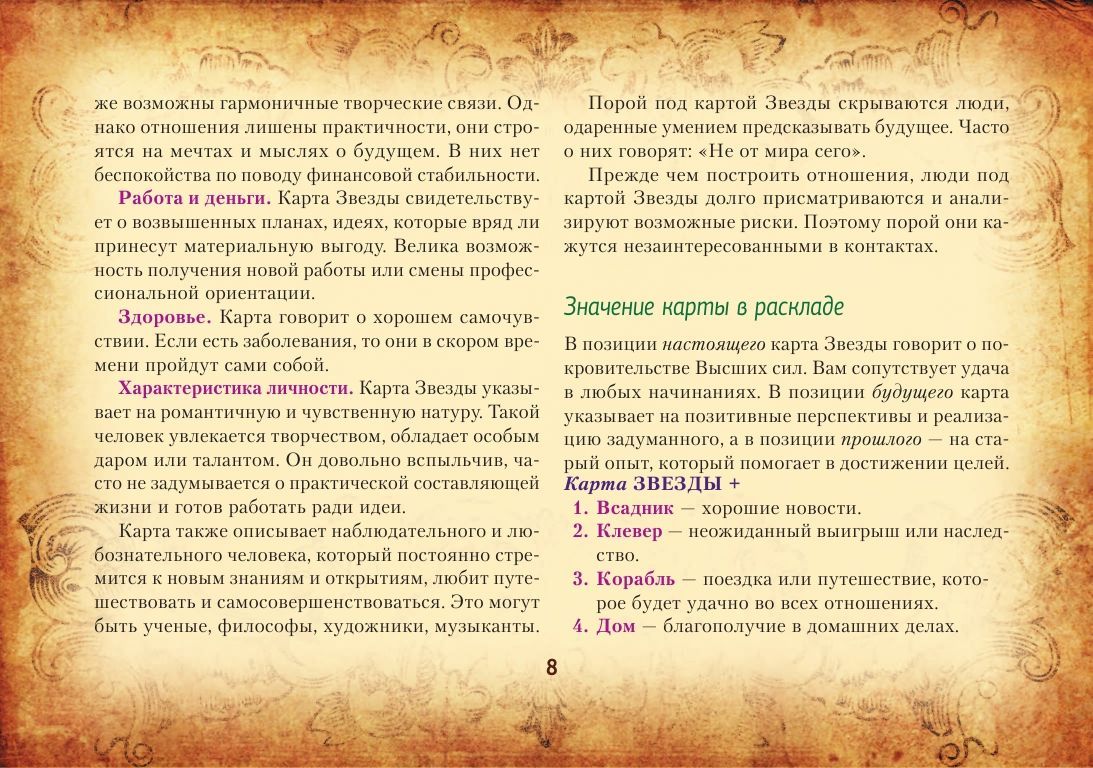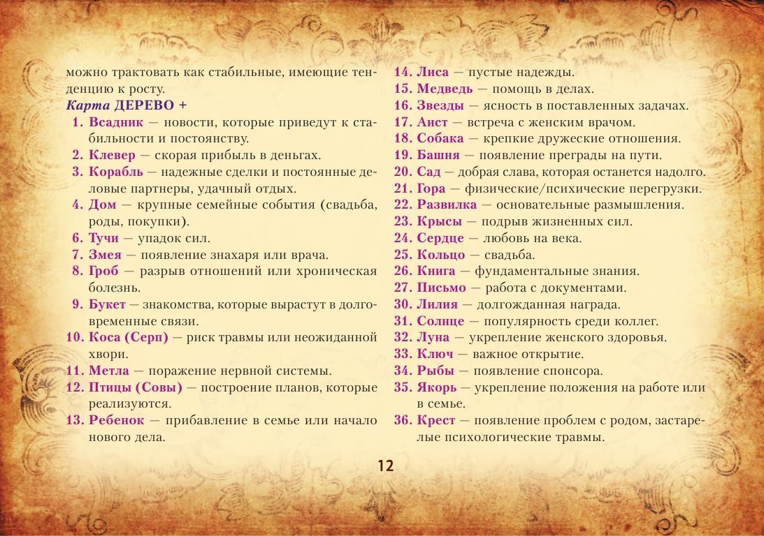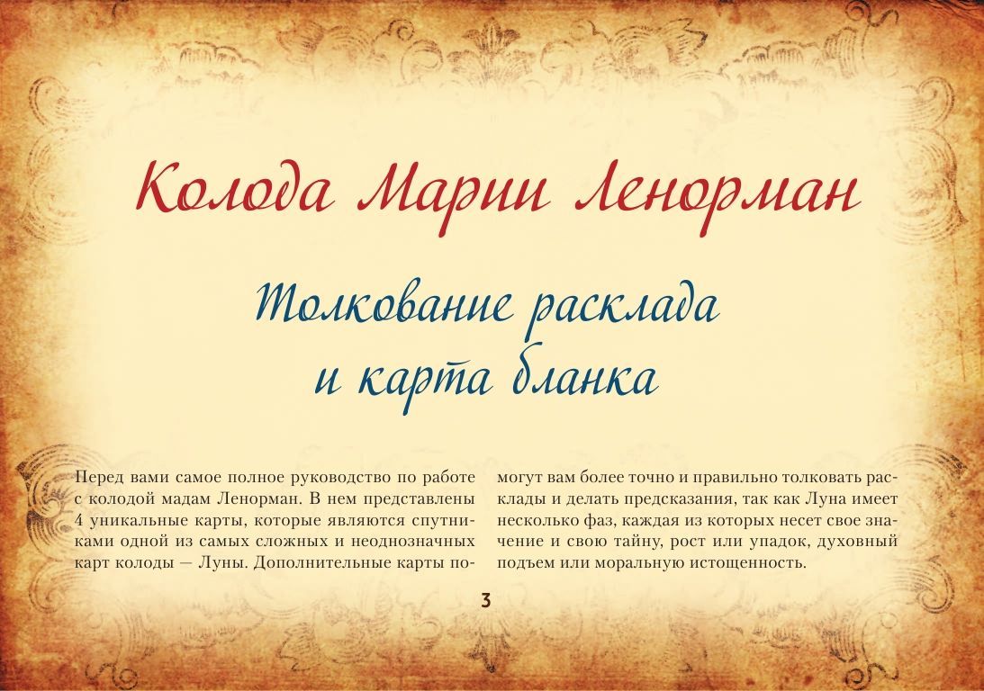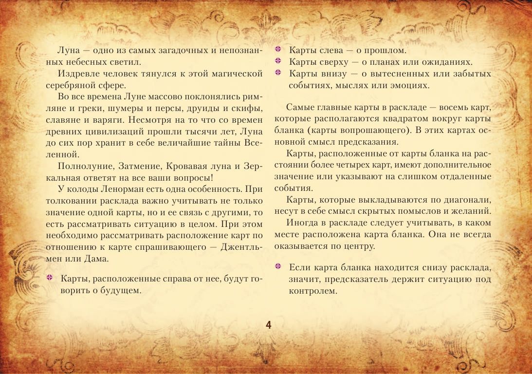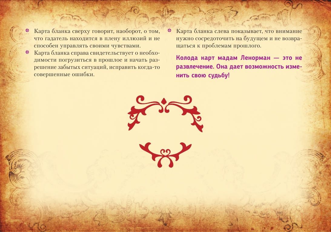 В ней вы найдете: особенности колоды мадам Ленорман, значение и толкование всех Арканов, советы по работе с колодой, популярные расклады.