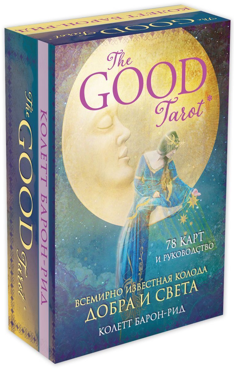 The Good Tarot — это совершенно новый взгляд на классическое Таро. Таинственные и мудрые образы этой колоды завоевали сердца тарологов и сделали ее мировым бестселлером. В своей работе Колетт Барон-Рид отказалась от пугающих и тревожных образов, чтобы по-мочь нам сохранить веру в лучшее и найти выход из самой сложной ситуации. Послания этой колоды неизменно позитивны и говорят о том, как понять смысл происходящего и все-гда достигать благоприятного результата.The Good Tarot станет незаменимым помощником и душевным другом тем, кто чувствует се-бя потерянным, тревожится о сделанном выборе или пытается внести ясность в сложившую-ся ситуацию.