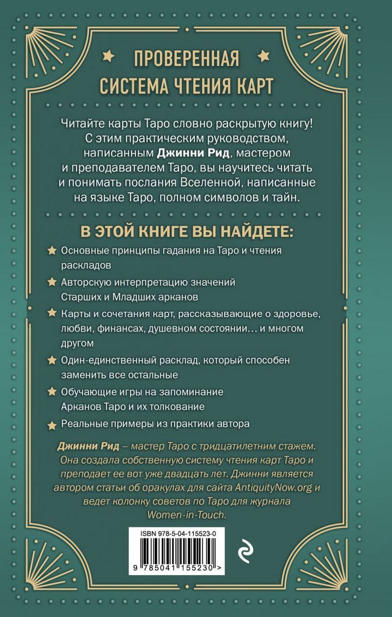 В книге вы также найдете перечень кратких традиционных значений карт Таро, способы их изучения, материалы, посвященные авторскому подходу к гаданию, и даже "домашнее задание" от Джинни Рид на развитие навыков чтения карт и интуиции.