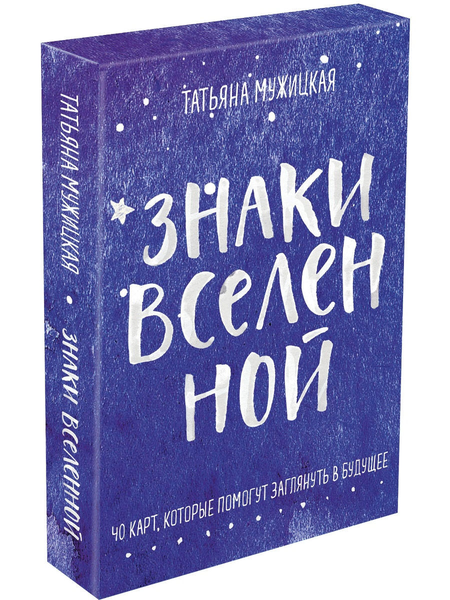 Если задать вопрос Вселенной, она обязательно ответит. Даст знак. Это может быть граффити на стене, рекламный плакат или надпись на футболке прохожего. С авторской колодой знаков Татьяны Мужицкой вам не придется долго бродить по улицам в ожидании послания свыше. Карты в этой колоде – не просто изображения, это история одного из нас, одного знака, одной рожденной мысли, одного принятия и многих реальных шагов, которые меняют нашу жизнь к лучшему. Татьяна собирала эти знаки по всей стране, чтобы сейчас вы смогли расслабиться и поговорить со Вселенной. Как пользоваться колодой: • Подумайте о том, что на данный момент является для вас очень важным и задайте вопрос Вселенной • Перемешайте колоду и вытяните одну карту • Взгляните на карту и прислушайтесь к своим самым первым ощущениям • Свяжите воедино ваши мысли и чувства и дайте ответ самому себе.